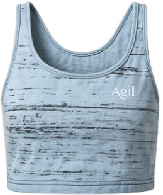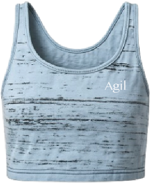 Engineered with a seamless body-hugging fit, it offers light to medium support, ideal for yoga, pilates, or low-impact training. The wide straps and soft scoop neck deliver comfort and coverage, while the subtle Agil logo keeps it clean.